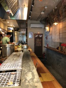 本来は大半の品が1000円前後で財布に優しい7坪のイタリアン・カウンターバル。 メニューは冷・温・麺で構成され、店舗外観同様少し和風テイスト。当日仕入れの食材を提供する為、メニューは手書き。