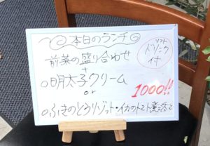 ランチ及びテイクアウト対応。最新情報はFACEBOOK。コロナ対策としてテラス席をも設けた。