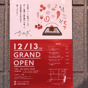 2018年4月独立し、中目黒に「スペイン料理 パブロ」を開店。2019年全国タパス大会では中東でポピュラーなカダイフを使った料理で優勝。これはアレンジして「鮮魚のパリパリ包み揚げ」としてカルボでも提供される。2020年1月にカルボをオープン、同店ではイタリアン・シェフの根津直樹氏と組んで、メニュー開発を行っている。