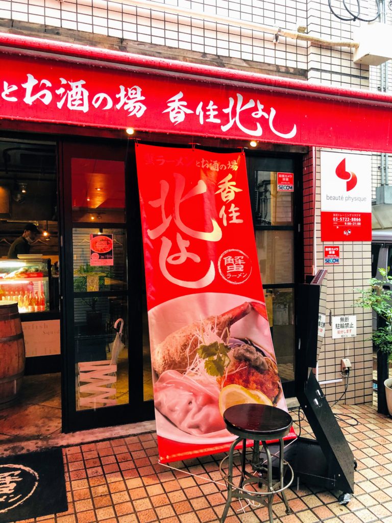 以前の店名は「カニとサカナの場 」でCasava、リニュアル後は「蟹ラーメンとお酒の場」なので、同じCa(蟹)sa(酒)va(場)でも良いかと思うが、元々の屋号北よしを名乗っている。