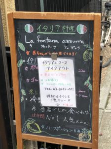 ディナー・コース料理及び単品テイクアウト。事前電話03-6452-2552で注文、引き渡し16~17時。月曜定休。Instagramと頻繁なUpdateはされていないが店のWebSiteとFACEBOOKもある。