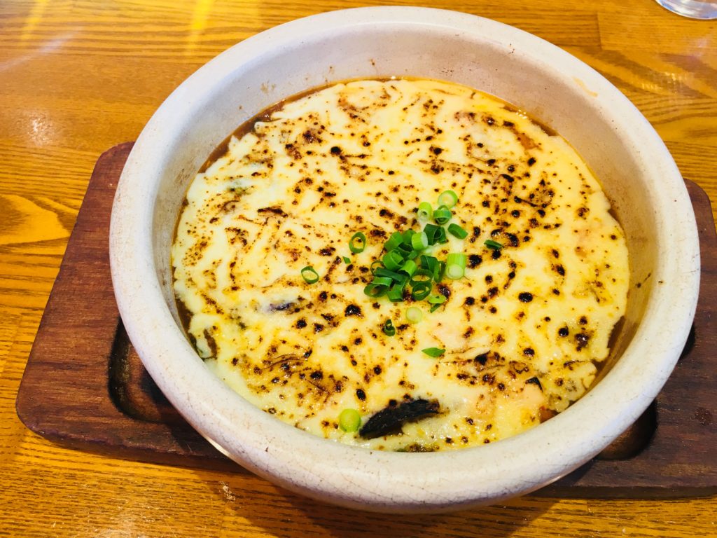 ラザニアをヒントにワインにあう創作中華「焼きチーズ麻婆豆腐」を開発。ネタを炙る回転寿司屋から着想を得て、チーズの表面はガスバーナーで炙る。TVでも紹介され全国から客が来る人気メニューに。